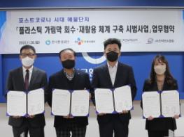 한국환경공단 수도권서부환경본부(본부장 방현홍), CJ프레시웨이㈜(본부장 배수영), (사)한국플라스틱단일재질협회(회장 구제봉) 및 (사)한국청소협회(회장 윤경열)는 2022년 11월 28일(월) “플라스틱 가림막 회수·재활용 활성화를 위한 시범사업”을 추진하기로 하고 공동 업무협약을 체결하였다.