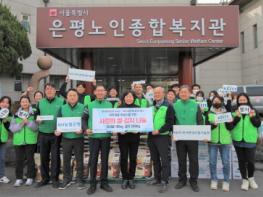 최흥진 한국환경산업기술원장(사진 앞줄 오른쪽에서 네 번째)은 정종관 NH농협은행 서울중앙사업부장(여섯 번째)과 함께 11월 29일 서울 은평구 은평노인종합복지관을 찾아 취약계층 어르신을 위한 배식 봉사활동을 진행하고, NH농협은행이 준비한 우리쌀 100포와 김치 256kg을 기부했다.