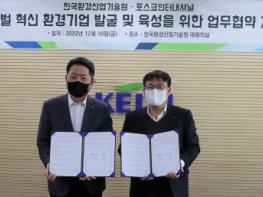 한국환경산업기술원(원장 최흥진)은 12월 16일 서울 은평구 한국환경산업기술원 대회의실에서 ㈜포스코인터내셔널(대표이사 주시보)과 ‘글로벌 혁신 환경기업 발굴 및 육성을 위한 해외 진출 지원 업무협약’을 체결했다.