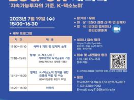 한국환경산업기술원(원장 최흥진)은 녹색투자에 위장행위인 그린워싱을 퇴출하려는 국제사회 흐름에 발맞춰 ‘지속가능투자의 기준, 한국형 녹색분류체계’를 주제로 7월 19일 오후 3시 ‘제4회 ESG ON 세미나’를 온라인으로 개최한다.