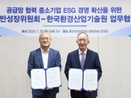 동반성장위원회(위원장 오영교)와 한국환경산업기술원(원장 최흥진)은 20일 오후 ‘공급망 협력 중소기업의 환경-사회-투명경영(ESG) 경쟁력 강화’를 위한 업무협약을 체결했다.