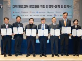 환경부(장관 한화진)와 한국환경보전원(원장 신진수)은 19일 국내 7개 대학(총장 등)과 함께 친환경 소양을 갖춘 미래 인재를 양성하고, 환경교육을 활성화하기 위한 업무협약식을 개최했다.