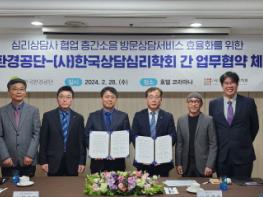 이번 업무협약은 한국환경공단과 (사)한국상담심리학회 간 상호협력 및 업무교류를 강화해 심리적 관점의 층간소음 갈등 조정 기법 마련을 위한 목적으로 진행됐다.