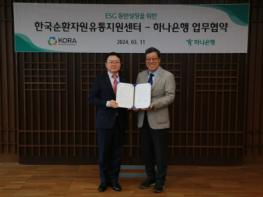 한국순환자원유통지원센터(이사장 이명환, 이하 “유통지원센터”)는 하나은행(은행장 이승열, 이하 “하나은행”)과 3월 11일 하나은행 본점(서울시 중구) 에서「ESG동반성장을 위한 업무협약」을 체결했다.