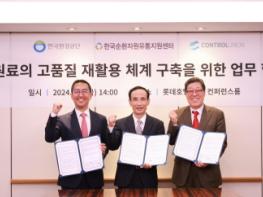 한국순환자원유통지원센터(이사장 이명환, 이하 “유통지원센터”), 한국환경공단(안병옥 이사장 이하 “공단”), ㈜컨트롤유니온코리아(대표 계성경, 이하 “컨유”)는 5월 3일 롯데호텔 서울(서울시 중구)에서 「재생원료의 고품질 재활용체계 구축을 위한 업무협약」을 체결했다.
