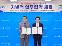 한국순환자원유통지원센터(이사장 이명환, 이하 “유통지원센터”)와 전라남도 여수시(여수시장 정기명, 이하 “여수시”)는 6월 19일(수) 여수시청 시장실에서 자원순환 활성화를 위한 협력체계 구축 업무협약을 체결했다.