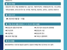 한국환경보전원(원장 신진수)은 환경교육법 제30조에 따라 9~10월 2달 간 전국의 공공기관, 학교, 어린이집 등 약 4천4백개 기관을 대상으로 ‘2024년 환경교육 실태조사’를 실시한다고 10일 밝혔다.