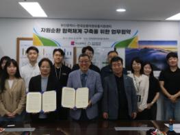 한국순환자원유통지원센터(이사장 이명환, 이하 “유통지원센터”) 와 부산광역시(시장 박형준, 이하 “부산시”)는 9월 18일(목) 유통지원센터 이사장실에서 자원순환 협력체계 구축을 위한 업무협약을 체결했다.