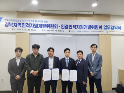 환경 인적자원개발위원회(이하 환경 ISC, 위원장 유명수 한국상하수도협회 상근부회장)와 경북지역 인적자원개발위원회(이하 경북 RSC, 공동위원장 고병헌)는 9월 30일 경북 김천 호텔 로제니아에서 ‘환경 ISC-경북 RSC 업무협약’을 체결했다.