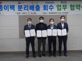 환경부(장관 한정애)는 2021년 3월 16일 오전 11시 화성시 환경사업소에서 화성시, 삼성전자, 한국포장재재활용사업공제조합과 함께 종이팩 분리배출 활성화를 위한 업무협약을 체결하였다.