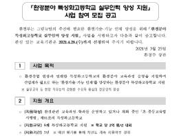 환경부와 한국환경산업기술원은 환경분야 맞춤형 실무인력 양성을 위한 ‘환경분야 특성화고등학교 지원사업’ 모집 공고를 내고, 4월 23일부터 28일까지 신청 접수를 받습니다.