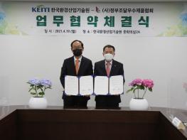 유제철 한국환경산업기술원장(사진 오른쪽)과 장세용 ㈔정부조달우수제품협회장은 4월 19일 서울 은평구 한국환경산업기술원 회의실에서 중소환경기업의 공공조달 활성화를 위해 협약을 체결했다. 이에 따라 두 기관은 중소기업의 환경표지제품 인증과 조달우수제품 지정에 관해 상호 협력하고 중소환경기업의 공공시장 판로확대를 함께 지원할 예정이다.