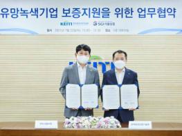 한국환경산업기술원(원장 유제철)은 환경 분야 유망기업의 금융지원을 위해 7월 22일 서울 은평구 환경산업기술원에서 SGI서울보증(대표이사 유광열)과 업무협약을 체결했다.