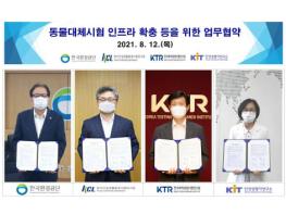 한국환경공단(장준영 이사장)은 한국건설생활환경시험연구원, 한국화학융합시험연구원 및 안전성평가연구소와 국내 동물대체시험 인프라 확충 등에 상호 협력하기 위해 12일 다자간 업무협약(MOU)을 비대면 체결했다고 밝혔다.