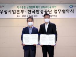 한국환경공단(이사장 안병옥)은 “2050 탄소중립” 실천문화 인식 제고 및 확산을 위해 우정사업본부(본부장 손승현)와 업무 협약을 체결한다고 밝혔다.