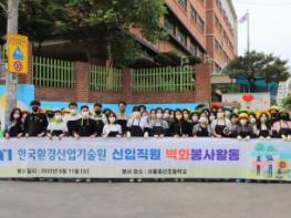 한국환경산업기술원 신입직원 50여 명은 5월 11일 오후 서울 은평구 서울증산초등학교를 찾아 담벼락 벽화그리기 활동을 진행했다. 학교 외벽에 친환경 메시지를 담은 벽화를 그려 넣어 아이들이 자연스럽게 환경에 관심을 가질 수 있도록 했다.