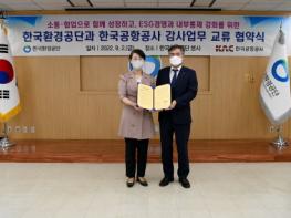 한국환경공단(상임감사 이세걸)은 한국공항공사(상임감사위원 박영선)와 9월 2일 한국환경공단 본사(인천광역시)에서 감사업무 상호교류에 관한 협약을 체결했다.