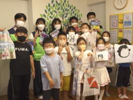 아이들은 행복한 동물이 사는 지구를 그리고 “지구야 고마워, 아프지마”라는 메시지를 넣으며 세상에 하나뿐인 가방을 만들었다.