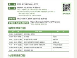설명회에서는 서울본부세관과 국제원산지정보원 전문가가 RCEP의 주요내용과 활용방법 등을 설명하고, FTA 및 해외시장 진출 전반에 대한 상담도 진행한다.